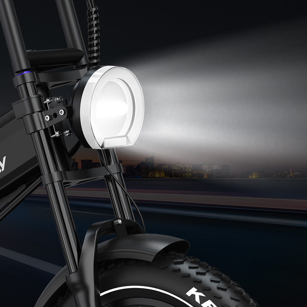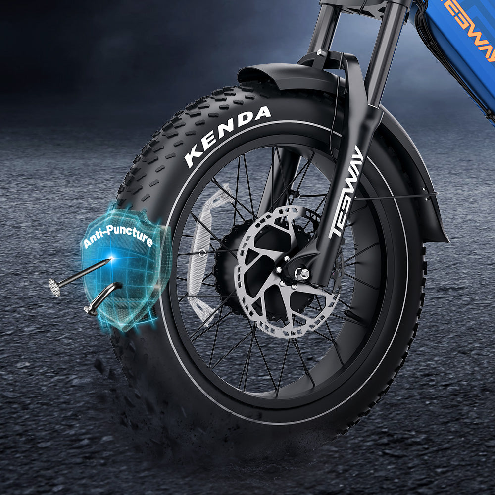 20"x4.0" Kenda fat tires offer stability across various surfaces, from urban roads to light trails. Reflective side strips enhance visibility for safer night riding.