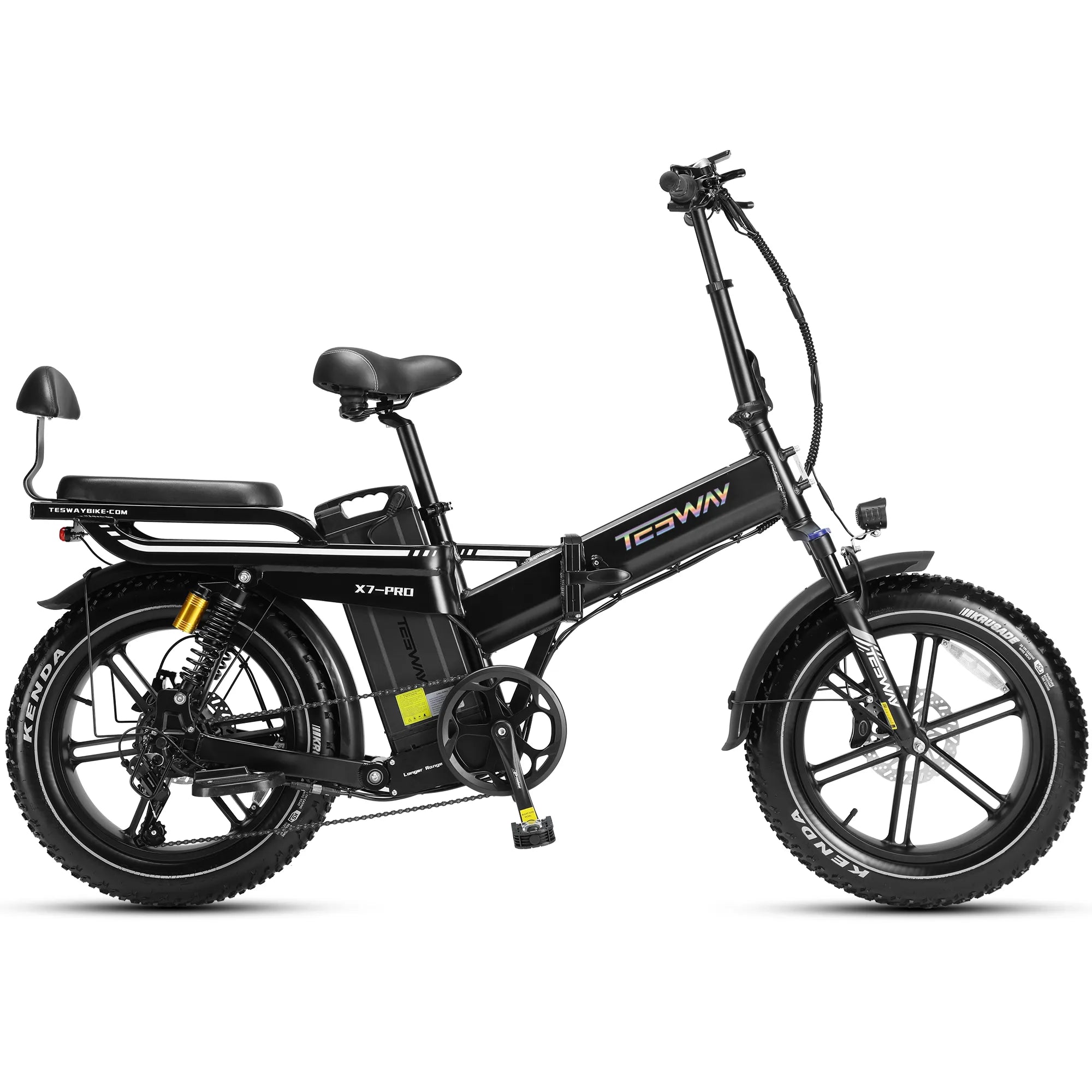 The X7 Proโ€™s frame is crafted from durable 6061 aerospace-grade aluminum alloy, lasting 10 to 20 years or more. Designed with a sturdy folding jig, it supports up to 350 pounds, ensuring safety starts with quality frame material.